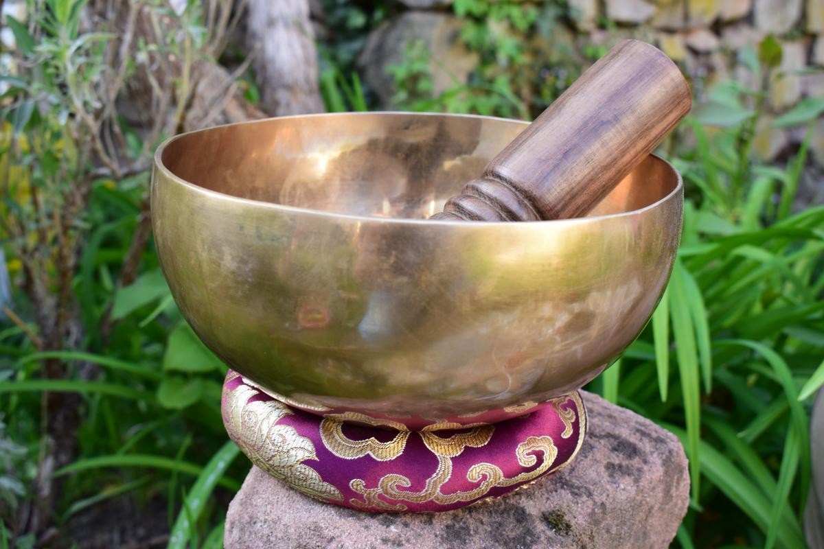 Les bols tibétains de grande taille se travaille à la frappe et au chant avec le maillet, il est aussi recommandé d'utiliser la mailoche en feutre pour un son plus grave.